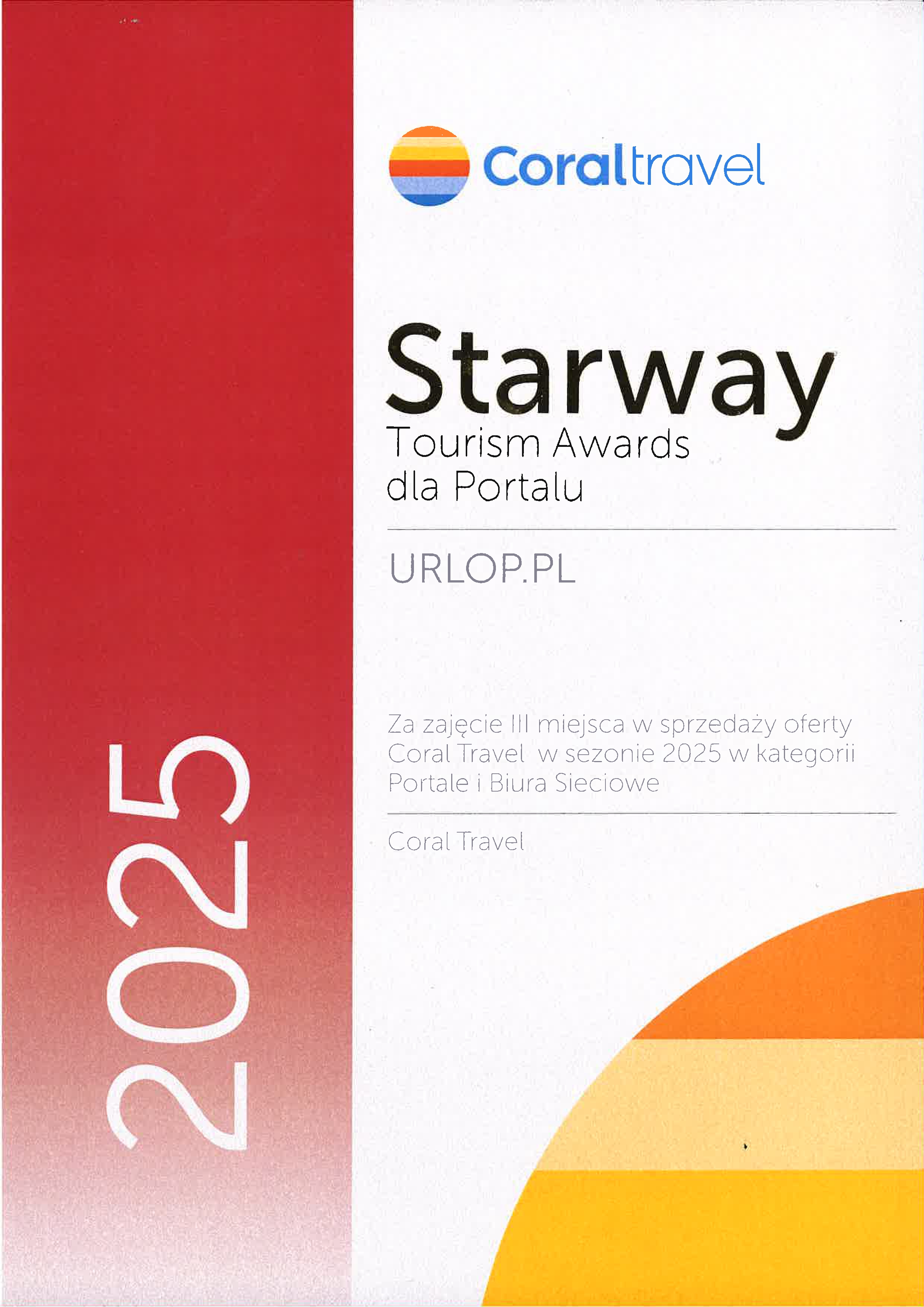 - Coral Travel – Starway Tourism Awards – prestiżowe nagrody dla najlepszych agentów w Polsce.