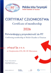 - Polska Izba Turystyki – wieloletnie członkostwo i rekomendacje, potwierdzające naszą wiarygodność i stabilność.